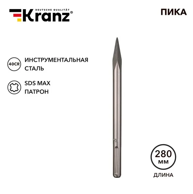 Пика применяется для формирования отверстий в твердых материалах: бетоне, камне, кирпиче. Эффективна в работах, где требуется разрушение или грубая обработка материала. Пика выполнена из сверхпрочной инструментальной стали, легированной хромом и молибденом (40Cr), благодаря чему выдерживает интенсивную нагрузку, имеет долгий срок службы и высокую производительность. Изготовлена методом ковки, что повышает прочность и устойчивость оснастки к механическим воздействиям. Хвостовик стандарта SDS-max диаметром 18 мм быстро и надежно крепится в тяжелых строительных перфораторах с соответствующим патроном. Используется в ударном режиме.