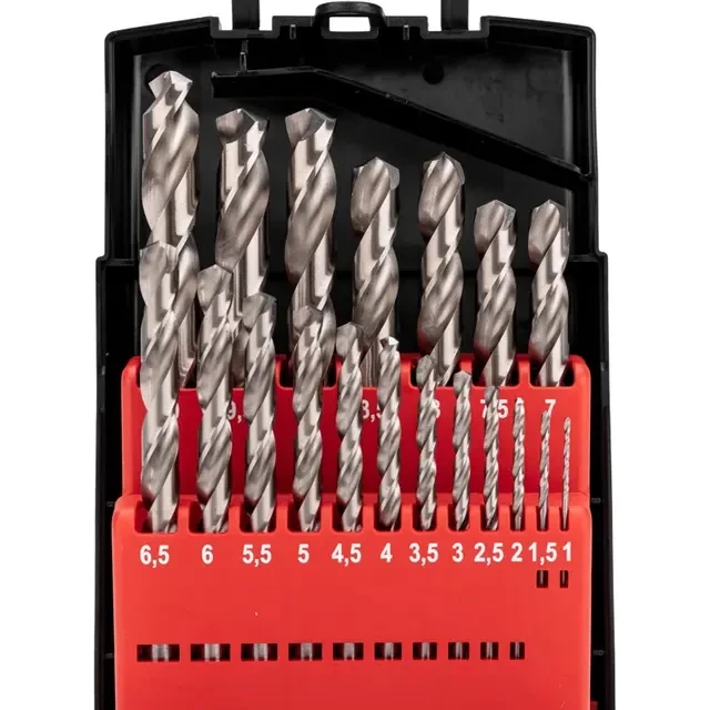 Набор из 19 сверл по металлу KRANZ (1-10 мм) предназначен для сверления отверстий в таких материалах, как сталь, чугун, нержавеющая сталь, цветные металлы и пластик. Сверла применяются совместно с дрелями, шуруповертами и станками с цилиндрическим типом крепления. Изделия выполнены из качественной стали М2 (Р6М5), что обеспечивает высокую производительность, а также препятствует быстрому перегреву во время использования. Режущая часть инструментов заточена под углом 135 градусов, что способствует более эффективному проникновению в материал, уменьшая износ сверла. Благодаря вышлифованному профилю сверло сохраняет точное положение во время сверления, благодаря чему создаваемые отверстия приобретают ровную и аккуратную форму. Набор упакован в пластиковый прозрачный футляр, что делает процесс хранения и использования намного удобнее. Комплектация: сверла диаметром: 1/1,5/2/2,5/3/3,5/4/4,5/5/5,5/6/6,5/7/7,5/8/8,5/9/9,5/10, подставка под сверла с маркировкой, прозрачная упаковка.