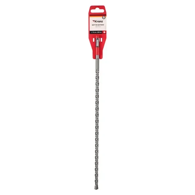 Бур по бетону с хвостовиком SDS PLUS 10x400 мм KRANZ используется во время строительных и ремонтных работ. Предназначен для сверления и бурения отверстий в слабоармированном бетоне, граните, кирпичной кладке и камне при помощи перфоратора с креплением SDS PLUS, которое используется в большинстве электроинструментов бытового и профессионального назначения. Изделие выполнено из качественной стали, что обеспечивает долгий ресурс работы и высокую производительность. Конструкция со стабилизирующей спиралью сохраняет точное положение бура во время сверления и равномерно распределяет ударную нагрузку, кромки с 2 гранями обеспечивают легкое выведение шлама и мелких частиц пыли из рабочей зоны, что поддерживает скорость работы, а усиленный резец предотвращает заклинивание оснастки в арматуре. Твердосплавная вставка на конце бура способствует эффективному входу в материал, что увеличивает цикл службы оснастки и уменьшает износ сверла. Технические характеристики: Диаметр: 10 мм Тип хвостовика: SDS PLUS Общая длина: 400 мм Рабочая длина: 340 мм Количество граней: 2 Материал тела бура: инструментальная сталь (40cr) Материал вставки на конце бура: карбидный сплав (YG8C)