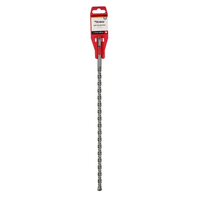 Бур по бетону с хвостовиком SDS PLUS 12x400 мм KRANZ используется во время строительных и ремонтных работ. Предназначен для сверления и бурения отверстий в слабоармированном бетоне, граните, кирпичной кладке и камне при помощи перфоратора с креплением SDS PLUS, которое используется в большинстве электроинструментов бытового и профессионального назначения. Изделие выполнено из качественной стали, что обеспечивает долгий ресурс работы и высокую производительность. Конструкция со стабилизирующей спиралью сохраняет точное положение бура во время сверления и равномерно распределяет ударную нагрузку, кромки с 2 гранями обеспечивают легкое выведение шлама и мелких частиц пыли из рабочей зоны, что поддерживает скорость работы, а усиленный резец предотвращает заклинивание оснастки в арматуре. Твердосплавная вставка на конце бура способствует эффективному входу в материал, что увеличивает цикл службы оснастки и уменьшает износ сверла. Технические характеристики: Диаметр: 12 мм Тип хвостовика: SDS PLUS Общая длина: 400 мм Рабочая длина: 340 мм Количество граней: 2 Материал тела бура: инструментальная сталь (40cr) Материал вставки на конце бура: карбидный сплав (YG8C)