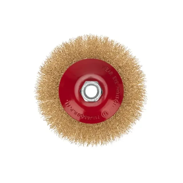 Коническая щетка KRANZ применяется в составе с угловой шлифовальной машиной с целью очистки разнообразных металлических деталей и заготовок от слоя краски, лака, заусенцев, ржавчины, окалины или нагара. Подходит для обработки и выравнивания сварочных швов на стальных поверхностях. Витая щетина из латунированной проволоки оптимально подходит для аккуратной обработки и шлифовки, позволяет удалить тонкий слой материала, а также придать поверхности глянцевый блеск. Латунированная проволока имеет высокую устойчивость к коррозии, а при работе возникает меньше искр. Коническая форма щетки позволяет легко достигать труднодоступных участков и обрабатывать поверхности различных форм и размеров. Тип соединения М14 обеспечивает простоту и надежность установки на УШМ. Инструмент соответствует действующим стандартам качества и подходит для использования в условиях интенсивного и сложного труда.