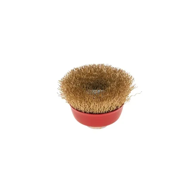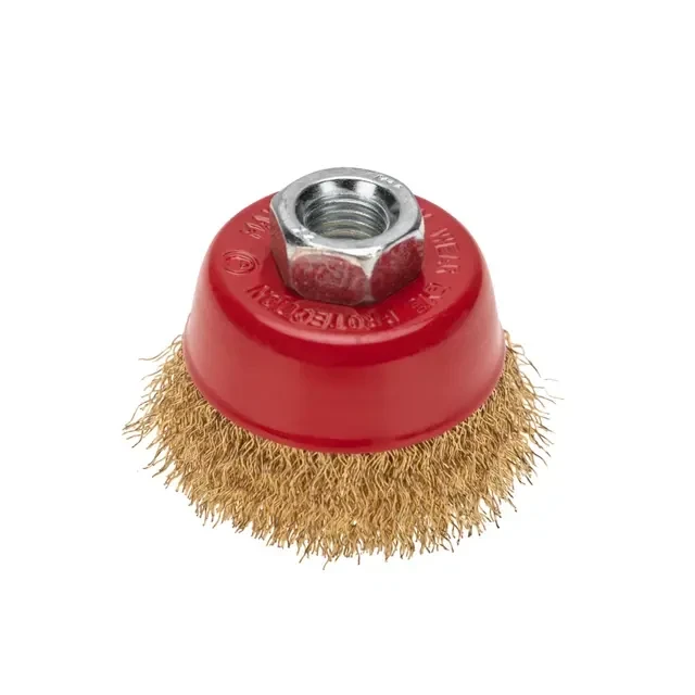 Чашечная щетка KRANZ применяется в составе угловой шлифовальной машины для очистки разнообразных металлических деталей и заготовок от слоя краски, лака, заусенцев, ржавчины, окалины или нагара. Подходит для обработки и выравнивания сварочных швов на стальных поверхностях. Витая щетина из латунированной проволоки оптимально подходит для аккуратной обработки и шлифовки, позволяет удалить тонкий слой материала, а также придать поверхности глянцевый блеск. Латунированная проволока имеет высокую устойчивость к коррозии, а при работе возникает меньше искр. Чашечная форма позволяет обрабатывать поверхности с большой площадью, а также обеспечивает улучшенное прилегание и равномерное распределение давления при чистке. Тип соединения М14 обеспечивает простоту и надежность установки на УШМ. Инструмент соответствует действующим стандартам качества и подходит для использования в условиях интенсивного и сложного труда.