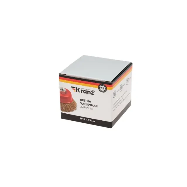 Щетка чашечная для УШМ, витая латунированная проволока, 65мм, М14 KRANZ