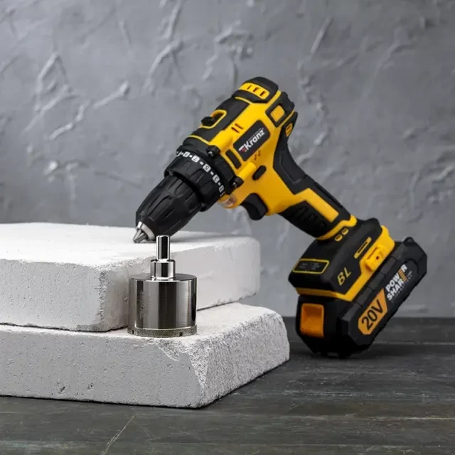 Алмазная коронка диаметром 50 мм используется при сверлении керамогранита, керамики, стекла. Наличие центровочного сверла обеспечивает точное позиционирование коронки на поверхности и помогает избежать смещения во время работ. Покрытие алмазной коронки выполнено гальваническим способом в два слоя, что обеспечивает эффективное сверление и продолжительный рабочий ресурс инструмента. Равномерное распределение алмазов по режущей кромке гарантирует аккуратное сверление материала без трещин и сколов. Высота алмазного слоя в 6 мм обеспечивает высокую производительность, а трехгранный хвостовик – надежную фиксации в патроне. При использовании алмазных коронок для сверления отверстий необходимо охлаждение, которое достигается путем подачи воды в рабочую зону.
