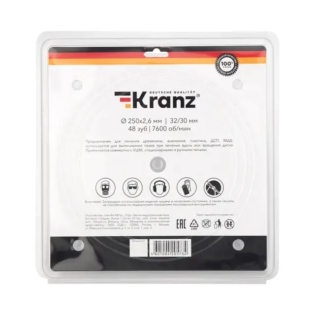 Пильный диск предназначен для пиления древесины различных пород, ДСП, МДФ, допускается распил пластика и алюминия. Рассчитан на выполнение качественных работ, где в приоритете чистота распила. Корпус диска изготовлен из высококачественной закаленной инструментальной стали, благодаря чему устойчив к деформациям. Благодаря твердосплавным напайкам из карбида вольфрама ВК8 твердостью 89-92 HRC и высококачественной лазерной заточке, распил заготовок получается более качественным. Надежную фиксацию напаек к зубьям обеспечивает припой с высоким содержанием серебра. Компенсационные пазы минимизируют деформацию диска при перегреве, в связи с чем диск дольше сохраняет свои рабочие свойства. Используется совместно с торцовочными и циркулярными пилами. Перед использованием оснастки необходимо обратить внимание на допустимое количество оборотов в минуту.