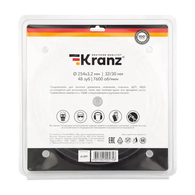 Пильный диск предназначен для пиления древесины различных пород, ДСП, МДФ, допускается распил пластика и алюминия. Рассчитан на выполнение качественных работ, где в приоритете чистота распила. Корпус диска изготовлен из высококачественной закаленной инструментальной стали, благодаря чему устойчив к деформациям. Благодаря твердосплавным напайкам из карбида вольфрама ВК8 твердостью 89-92 HRC и высококачественной лазерной заточке, распил заготовок получается более качественным. Надежную фиксацию напаек к зубьям обеспечивает припой с высоким содержанием серебра. Компенсационные пазы минимизируют деформацию диска при перегреве, в связи с чем диск дольше сохраняет свои рабочие свойства. Используется совместно с торцовочными и циркулярными пилами. Перед использованием оснастки необходимо обратить внимание на допустимое количество оборотов в минуту.