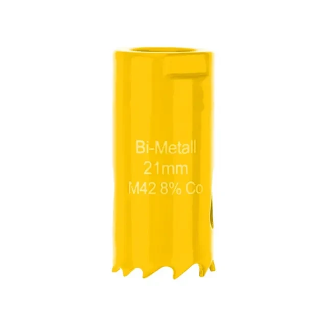 Коронка Bimetal используется во время электромонтажных работ и прокладки коммуникаций. Позволяет получить отверстия большого диаметра в таких материалах как пластик, дерево, сталь, металл и т.д. Применяется совместно с дрелями, перфораторами и стационарными станками. Тело коронки выполнено из инструментальной стали, а зубья с переменным шагом 4-6 мм изготовлены из быстрорежущей стали Р6М5К8, устойчивой к перегреву. Благодаря качеству используемых материалов оснастка отличается долгим ресурсом работы и высокой производительностью. Конструкция оснащена отверстиями, которые компенсируют деформации при перегреве, а также отводят строительную пыль и шлам. Особая заточка зубьев способствует эффективному входу в материал, что позволяет вырезать отверстия правильной круглой формы без сколов и трещин. Коронка используется с шестигранным хвостовиком для сверления при помощи дрели или с хвостовиком SDS PLUS для сверления при помощи перфоратора. Хвостовики приобретаются отдельно. Сверление металла/стали необходимо осуществлять в безударном режиме с применением СОЖ.