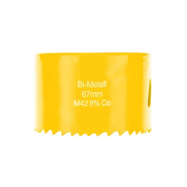 Коронка Bimetal используется во время электромонтажных работ и прокладки коммуникаций. Позволяет получить отверстия большого диаметра в таких материалах как пластик, дерево, сталь, металл и т.д. Применяется совместно с дрелями, перфораторами и стационарными станками. Тело коронки выполнено из инструментальной стали, а зубья с переменным шагом 4-6 мм изготовлены из быстрорежущей стали Р6М5К8, устойчивой к перегреву. Благодаря качеству используемых материалов оснастка отличается долгим ресурсом работы и высокой производительностью. Конструкция оснащена отверстиями, которые компенсируют деформации при перегреве, а также отводят строительную пыль и шлам. Особая заточка зубьев способствует эффективному входу в материал, что позволяет вырезать отверстия правильной круглой формы без сколов и трещин. Коронка используется с шестигранным хвостовиком для сверления при помощи дрели или с хвостовиком SDS PLUS для сверления при помощи перфоратора. Хвостовики приобретаются отдельно. Сверление металла/стали необходимо осуществлять в безударном режиме с применением СОЖ.