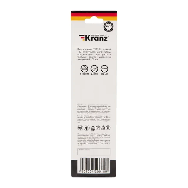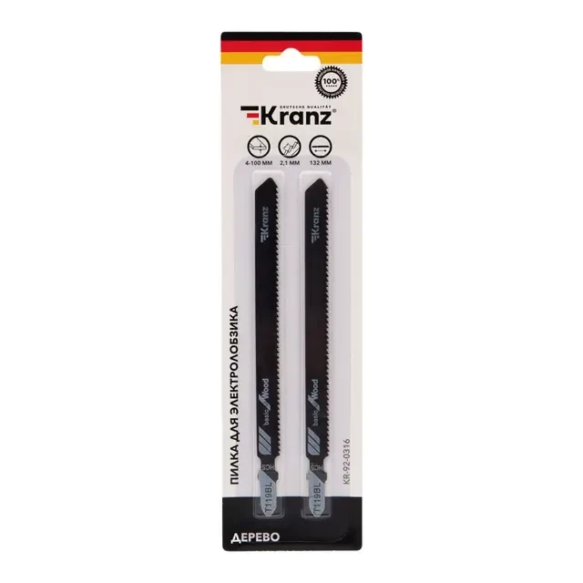 Пилка для электролобзика по дереву T119BL 132 мм 12 зубьев на дюйм 4-100 мм (2 шт./уп.) Kranz
