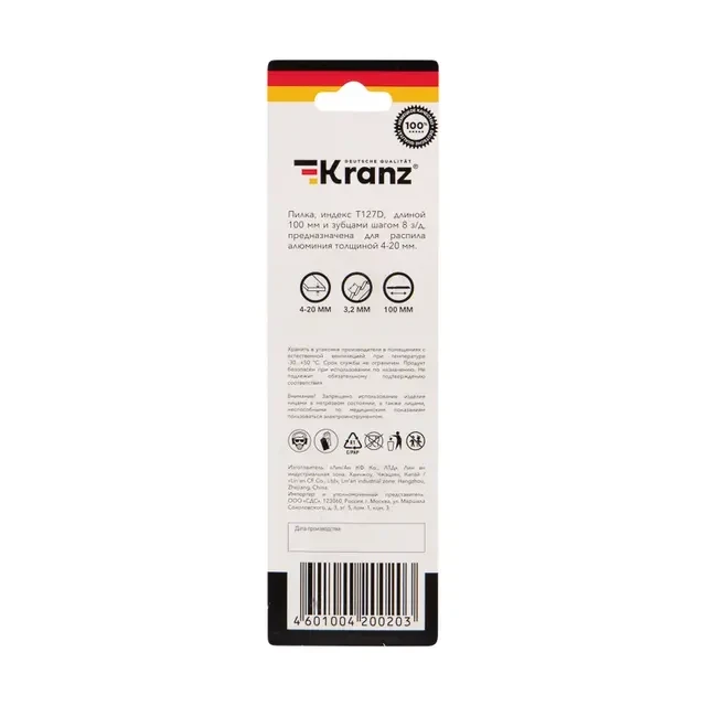 Описание Kranz KR-92-0318 - Купить Пилка для электролобзика по мягкому металлу