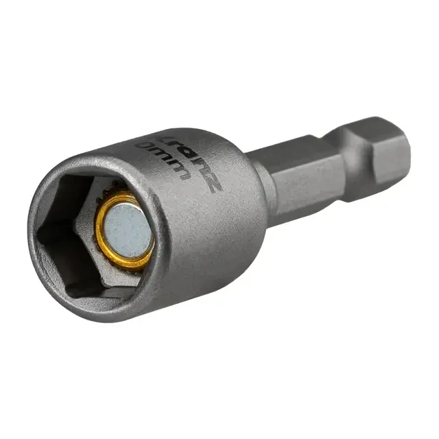 Ключ-насадка предназначен для работы с кровельными саморезами, гайками и винтами с внешним шестигранником. Используется с шуруповертом, дрелью или с отверткой-адаптером. Изготовлен из высококачественной стали CrV, благодаря чему устойчив к статическим и динамическим нагрузкам и износу. Внутрь головки ключа впрессован магнит, который надежно удерживает крепеж. Шестигранный хвостовик обеспечивает надежное закрепление ключа в патроне инструмента и не дает проворачиваться ключу. Благодаря хвостовику подойдет для установки на все виды шуруповертов и отверток-адаптеров.