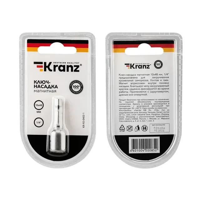 Ключ-насадка магнитная 1/4" 10х48 мм (1 шт./уп.) Kranz