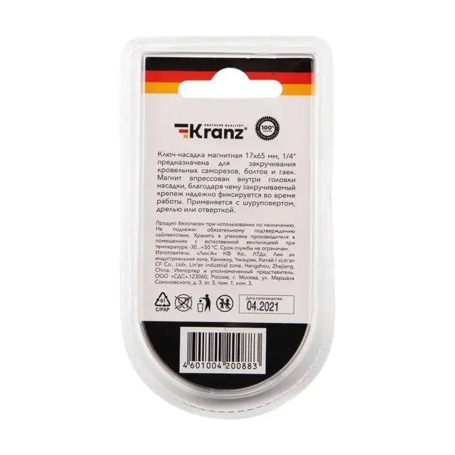 Ключ-насадка предназначен для работы с кровельными саморезами, гайками и винтами с внешним шестигранником. Используется с шуруповертом, дрелью или с отверткой-адаптером. Изготовлен из высококачественной стали CrV, благодаря чему устойчив к статическим и динамическим нагрузкам и износу. Внутрь головки ключа впрессован магнит, который надежно удерживает крепеж. Шестигранный хвостовик обеспечивает надежное закрепление ключа в патроне инструмента и не дает проворачиваться ключу. Благодаря хвостовику подойдет для установки на все виды шуруповертов и отверток-адаптеров.