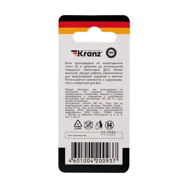 Описание Kranz KR-92-0414-1 - Купить Бита для шуруповерта PH2