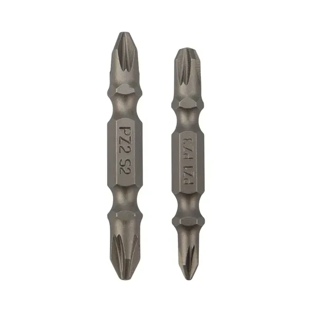 Биты используются в качестве сменных насадок на шуруповерт или отвертку-адаптер для работы с крепежом. Изготовлены из легированной высокопрочной стали S2, что дает повышенную устойчивость к изломам и деформации в наиболее нагружаемых точках касания. Биты трех популярных размеров подходят для работы со шлицами типа PH диаметром от 2,1 до 7 мм. Намагниченные наконечники облегчают крепление и фиксацию крепежа на бите. Шестигранный хвостовик надежно фиксирует биты в патроне инструмента и не дает им проворачиваться. Благодаря хвостовику подойдут для установки на все виды шуруповертов и отверток-адаптеров. Набор состоит из двух двухсторонних бит с наконечниками PZ2xPZ2 и PZ1xPZ3.