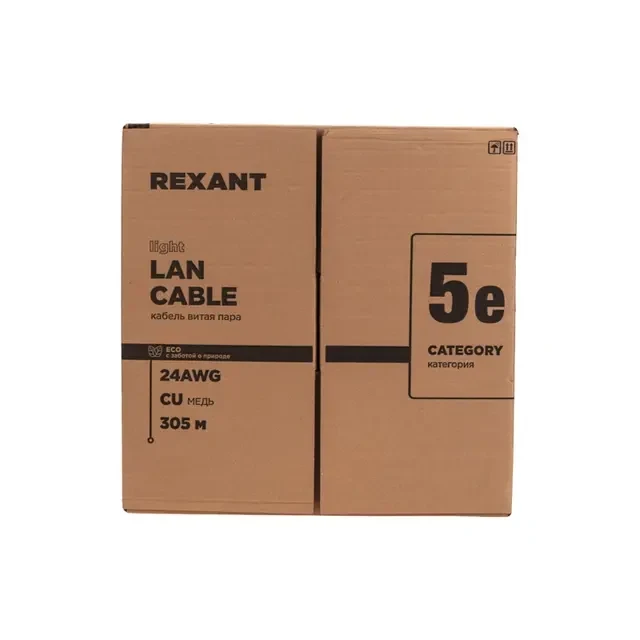 Кабель витая пара F/UTP, CAT 5е, PVC, 4PR, 24AWG, INDOOR, SOLID, серый, 305м, серия LIGHT, РФ REXANT