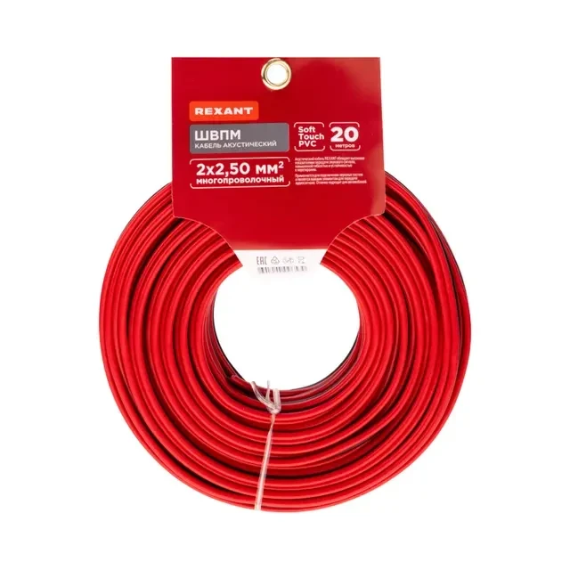 Акустический кабель REXANT 2х2,50 мм² используется для подключения звуковых систем и является залогом отличного звука домашней или автомобильной аудиоаппаратуры. Выступает в качестве важного элемента для передачи аудиосигнала. Состоит из двух многожильных проводников, расположенных параллельно друг другу. Проводники находятся в изоляции, которая защищает от внешних помех и механических повреждений. Материал изоляции – ПВХ, цвет – красно-черный. Изделие обладает разделительным основанием, что позволяет разъединять проводники без повреждения изоляции и оголения жил. Кабель поставляется в бухте длиной 20 метров.