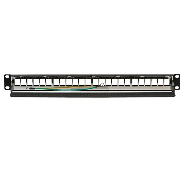 Патч-панель (коммутационная панель) используется при построении структурированных кабельных сетей. Относится к пассивному сетевому оборудованию. Служит для быстрой и удобной коммутации кабелей между активным сетевым оборудованием и рабочими местами (станционной и абонентской частями). Позволяет организовывать пространство внутри информационных шкафов и упорядочить кабельную разводку. Содержит 24 порта: совмещает в своем корпусе разъемы разных видов (Keystone, RJ45 и т. д) и категорий (5е,6 и т. д). Патч-панель монтируется в стойку 19''. Выполнена из высококачественных прочных материалов.