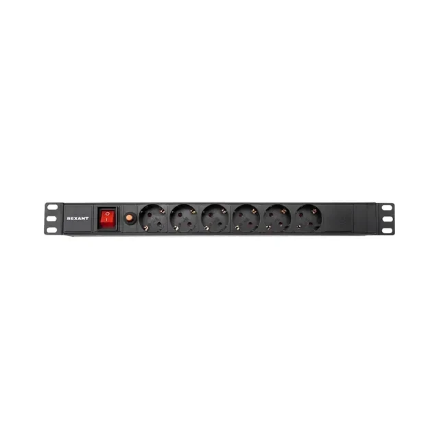 Блок распределения питания для 19" шкафов, горизонтальный, 6 розеток СЕЕ 7/4, 16A, фильтр, выкл, алюм корп, шнур 2м, вилка СЕЕ 7/7 REXANT