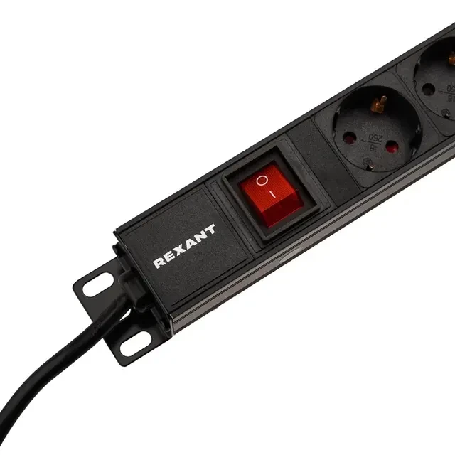 Блок распределения питания для 19" шкафов, вертикальный, 12 розеток СЕЕ 7/4, 16A, выкл, алюм корп, шнур 2м, вилка СЕЕ 7/7 REXANT