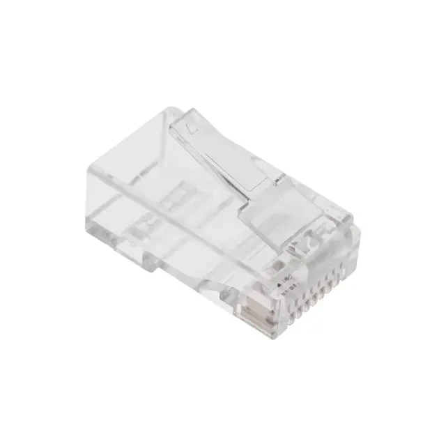 Разъем RJ-45 (8P8C) UTP категории 6 применяется для построения компьютерных сетей. Размещается на конце компьютерных кабелей и соединяет их с розеткой, хабом, свитчом, сервером, роутером или другим компьютером. Фиксация разъема на кабеле производится специальным обжимным инструментом. Устройство оснащено вставкой, которая облегчает распиновку жил в разъеме. Такая вставка необходима при использовании кабеля с многопроволочными жилами. Разъем изготовлен из прозрачного качественного пластика, имеет 8 посадочных мест и 8 ножей-контактов, которые покрыты слоем технического золота для повышения пропускной способности разъема. При изготовлении продукции использованы надежные материалы, обеспечивающие высокий уровень передачи данных и долгий срок службы. Разъемы серии RJ представленные нашей компанией соответствуют международным стандартам IEEE и обеспечивают функцию (PoE). PoE - технология передачи электрической энергии вместе с данными. Согласно стандартам IEEE 802.3af-2003 и IEEE 802.3at-2009 все разъемы серии RJ рассчитаны на номинальное напряжение 48 В постоянного тока ( макс = 57 В ) с максимальным током до 600 мА.