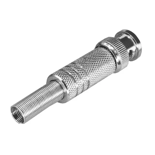 РАЗЪЁМ штекер BNC под пайку с пружиной металл (универсальный) PROconnect предназначен для подключения коаксиального кабеля c волновым сопротивлением 50 или 75 Ом, диаметром до 7 мм, к видеокамерам, видеорегистраторам, мониторам и другим радиоэлектронным устройствам. BNC-коннектор (BNC сокр. от Bayonet Neill Concelman) под пайку - электрический разъем с байонетной фиксацией закрепляется на кабеле с помощью пайки (центральная жила - пайка, а оплетка - обжим). Соединение такого типа позволит передать сигнал с минимальным уровнем потерь между проводниками кабеля и штекером, создавая наиболее качественный контакт. Металлический колпачок с пружиной защищает соединения и предотвращает кабель от перегиба в месте крепления к разъему. BNC-разъем изготовлен из материалов: корпус - никелированный цинк; центральный контакт - латунь с напылением технического золота; диэлектрик - фторопласт; колпачок с пружиной - металл. Диапазон рабочих температур от -40℃ до +110℃. Использование сплава меди (биметалл) и никелевого покрытия повышает долговечность разъема и позволяет применять в условиях климатических перепадов.