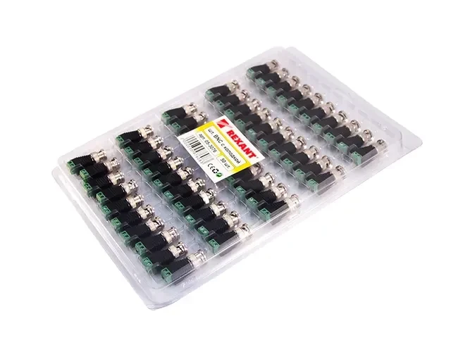 РАЗЪЁМ штекер BNC с клеммной колодкой REXANT предназначен для подключения коаксиального кабеля c волновым сопротивлением 50 или 75 Ом, к видеокамерам, видеорегистраторам, мониторам и другим радиоэлектронным устройствам. BNC-коннектор (BNC сокр. от Bayonet Neill Concelman) с клеммной колодкой - электрический разъем с байонетной фиксацией закрепляется на кабеле зажимом с помощью винтов. Этот способ крепления значительно проще и быстрее, чем пайка и обжим, но его надежность и качество соединения остаются на неизменно высоком уровне. BNC-разъем изготовлен из материалов: корпус - никелированный цинк и высокопрочный пластик; центральный контакт - латунь с напылением технического золота; диэлектрик - фторопласт. Диапазон рабочих температур от -40℃ до +110℃. Использование сплава меди (биметалл) и никелевого покрытия повышает долговечность разъема и позволяет применять в условиях климатических перепадов.