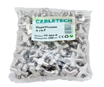 Переходник х4 гнезда F PROconnect используется предназначен для соединения коаксиальных проводов волновым сопротивлением 50 или 75 Ом, на концах которых расположены штекеры F-разъема. Позволяет разделить сигнал на три равные части и передать его на две линии при временном или предварительном подключении в период проведения ремонтно-восстановительных работ телевизионной линии. Изделие соединяет кабели методом накрутки F-коннектора, после соответствующей зачистки контактов. Монтаж не требует пайки контактов и использования специальных инструментов: может производиться в удаленных местах, таких как крыши домов или комплексов. Изготовлен из никелированного цинка, обеспечивающего надежность соединения и возможность использования в условиях климатических перепадов.