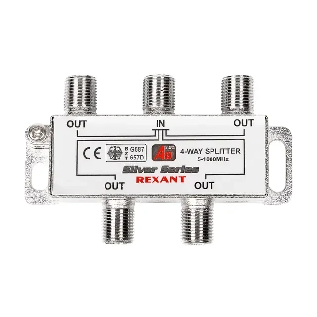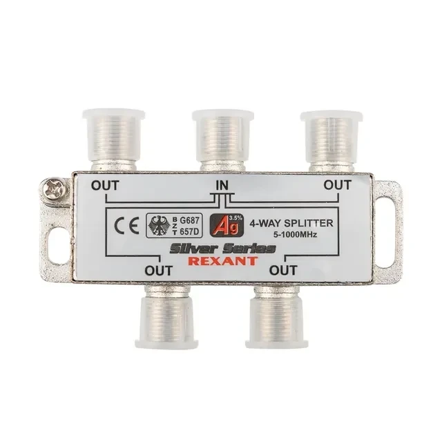 Делитель ТВх4 под F-разъем, 5-1000МГц, Silver (5 F-разъемов в комплекте) REXANT