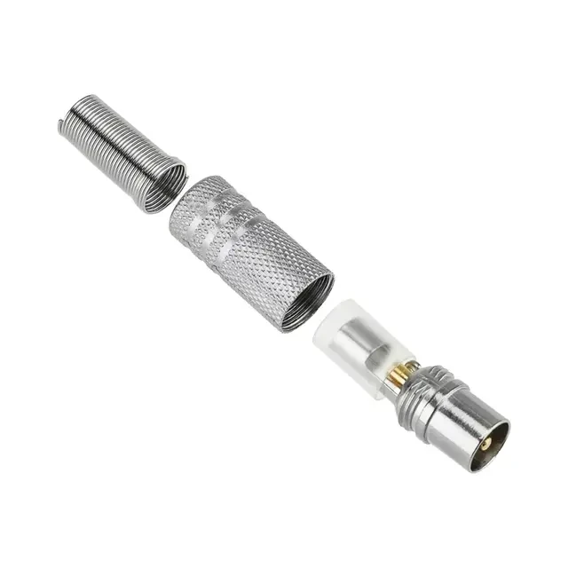 Никелированный TV-разъем штекер REXANT с пружиной предназначен для подключения эфирного, спутникового и кабельного телевидения с помощью радиочастотного кабеля. Разъем монтируется на телевизионный кабель и передает идущий по кабелю сигнал на ТВ устройства. Установка провода в разъеме производится с помощью винтового зажима, что значительно экономит время на монтаж. Корпус разъема и контакты изготовлены из никелированного медного сплава, обеспечивающие надежный и долговечный контакт. Устройство оснащено специальным пластмассовым пружинным амортизатором кабеля, который позволяет кабелю гнуться только с безопасным радиусом изгиба.