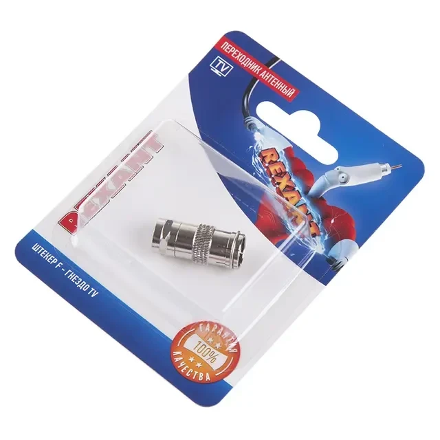 Антенный переходник (штекер F - гнездо TV) REXANT предназначен для соединения ТВ-гнезда с делителями, усилителями сигналов, ТВ приставками и другими ТВ устройствами. На одной стороне переходника располагается штекер F-разъема, а с другой – гнездо F-разъема. Переход изготовлен из никелированной меди. Контакты выполнены с высокими антикоррозийными свойствами. Устройство обладает высокой устойчивостью к внешним механическим воздействиям, что обеспечивает долговечное соединение между разъемами. Позволяет осуществлять монтаж без необходимости пайки. Легко устанавливается без использования специальных инструментов.