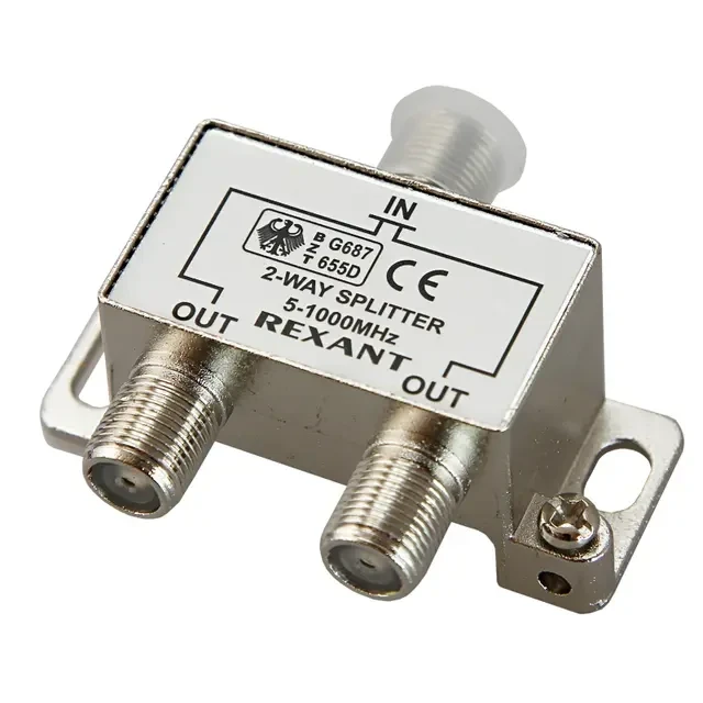 Антенный делитель F-типа на 2 TV REXANT предназначен для телевизионных систем. Используется для подключения нескольких телевизоров к одной антенне. Распределяет поступающий сигнал поровну на два выхода, что обеспечивает одинаково четкое изображение на всех подключенных устройствах. Подключается с помощью F-разъемов. Сплиттер обеспечивает надежное соединение контактов, что способствует качественному распределению сигнала без потери мощности. Не требует подключения к внешним устройствам. Полоса пропускания делителя от 5 до 1000МГц, что соответствует стандартному эфирному телевидению. При монтаже сплиттера нет необходимости паять контакты, что способствует удобному и быстрому подключению.