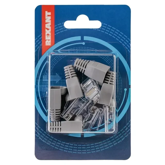 Набор сетевых разъемов №1 предназначен для оконцевания кабелей. В наборе 5 сетевых разъемов UTP и 5 изолирующих колпачков. Разъемы выполнены из прозрачного качественного пластика, благодаря чему обеспечивают высокий уровень передачи данных и долгий срок службы. Каждый разъем имеет 8 посадочных мест и 8 ножей-контактов, которые покрыты слоем технического золота для повышения пропускной способности. Для опрессовки разъема на кабеле необходимо использовать специальный обжимной инструмент. Изолирующие колпачки предохраняют кабель от перегиба в месте соединения с разъемом, а также защищают защелку коннектора от повреждений, что значительно продлевает срок службы готового шнура. Изделия не увеличивают габариты разъема, что позволяет использовать их в информационных шкафах с высокой плотностью портов. Колпачки изготовлены из пожаростойкого и эластичного полипропилена, который обладает высоким уровнем надежности.