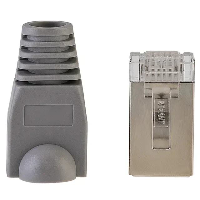 Набор сетевых разъемов №5 предназначен для оконцевания кабелей. В наборе 2 сетевых разъема FTP и 2 изолирующих колпачка. Разъемы выполнены из прозрачного качественного пластика, благодаря чему обеспечивают высокий уровень передачи данных и долгий срок службы. Каждый разъем имеет 8 посадочных мест и 8 ножей-контактов, которые покрыты слоем технического золота для повышения пропускной способности. Отличительной особенность – наличие экрана, который защищает сигнал от электромагнитных помех. Для опрессовки разъема на кабеле необходимо использовать специальный обжимной инструмент. Изолирующие колпачки предохраняют кабель от перегиба в месте соединения с разъемом, а также защищают защелку коннектора от повреждений, что значительно продлевает срок службы готового шнура. Изделия не увеличивают габариты разъема, что позволяет использовать их в информационных шкафах с высокой плотностью портов. Колпачки изготовлены из пожаростойкого и эластичного полипропилена, который обладает высоким уровнем надежности.