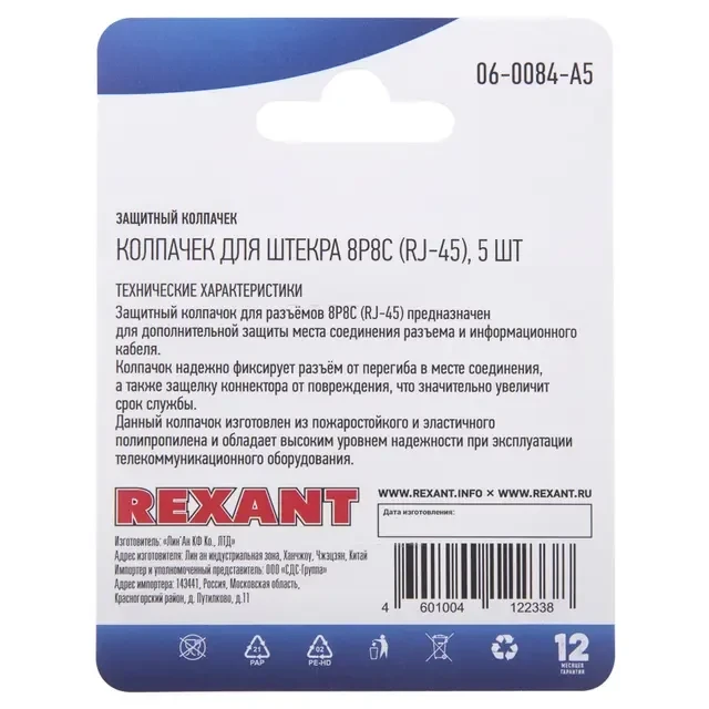 Описание REXANT 06-0084-A5 - Купить Колпачок защитный для штекера