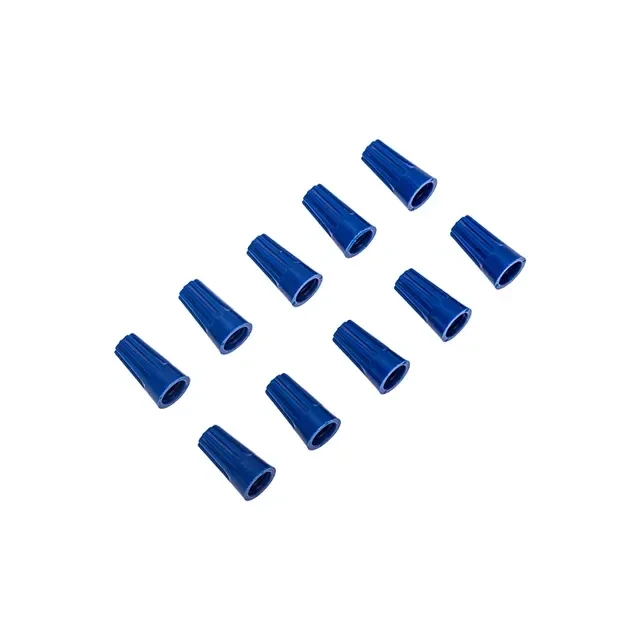Соединительный изолирующий зажим, синий. Предназначен для соединения и фиксации в скрутке медных проводов. Контактная часть: стальная оцинкованная пружина. Материал корпуса: нейлон 6.6, не содержит галогенов, не поддерживает горения. Пружина конической формы обеспечивает надежный захват и удержание скрутки проводов на протяжении всего срока эксплуатации. Нейлоновый корпус полностью изолирует скрутку проводов. Температурный диапазон: от -10°С до +75°С