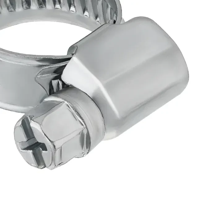 Хомут червячный — это соединительный элемент, применяемый для крепления и герметизации соединения шлангов, патрубков и других жёстких и гибких трубопроводов. Область применения: червячные хомуты предназначены для обжатия различных соединений в гидравлических и пневматических системах и должны обеспечивать герметичность соединений в условиях умеренного и тропического климата. Материал: высококачественная углеродистая сталь. Хомут состоит из ленты с зубчатой дорожкой, корпуса и специального винта для затяжки хомута. Детали червячного хомута имеют цинковое покрытие с хроматированием 6 мкм (бесцветное) по ГОСТ 9301-86.