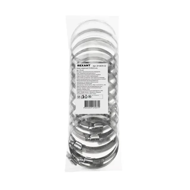 Описание REXANT 07-0670-12 - Купить Хомут червячный