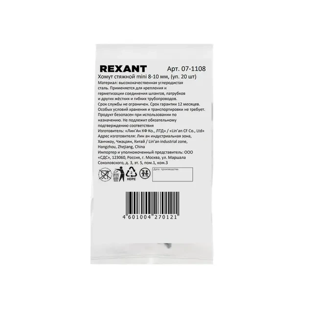 Описание REXANT 07-1108 - Купить Хомут стяжной mini