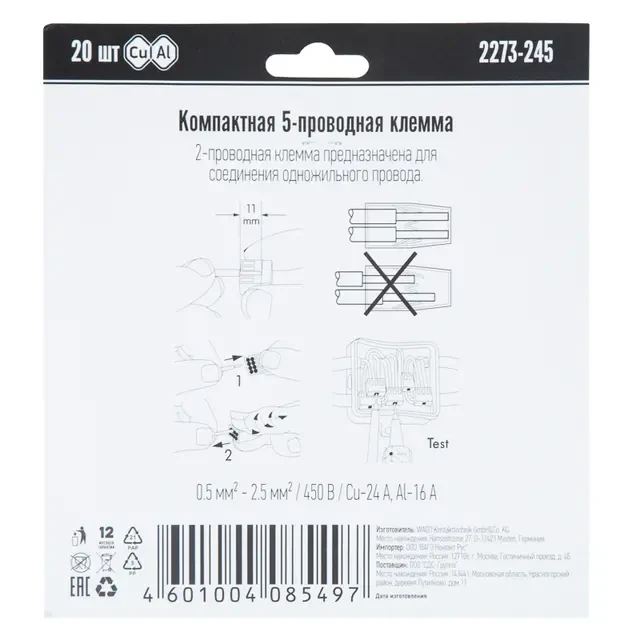 Количество зажимов (подключаемых проводников)