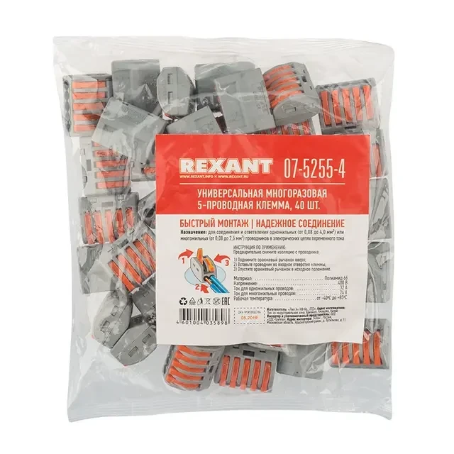 Описание REXANT 07-5255-4 - Купить Универсальная клемма СМК 222-415
