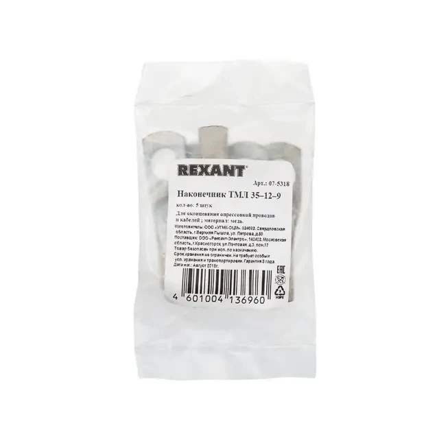Описание REXANT 07-5318 - Купить Наконечник медный луженый ТМЛ 35–12–9