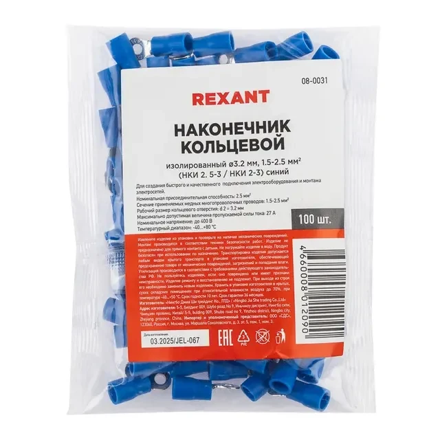 Описание REXANT 08-0031 - Купить Наконечник кольцевой изолированный