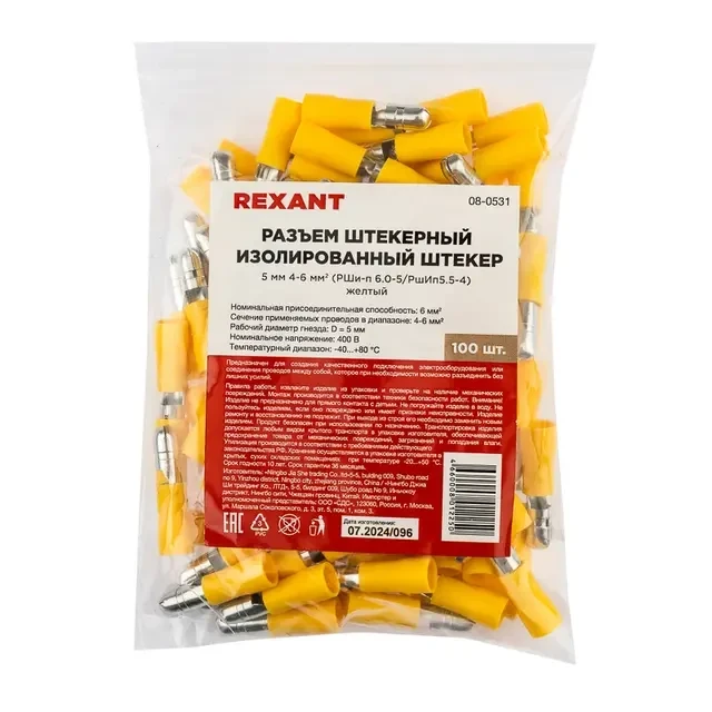 Описание REXANT 08-0531 - Купить Разъем штекерный изолированный