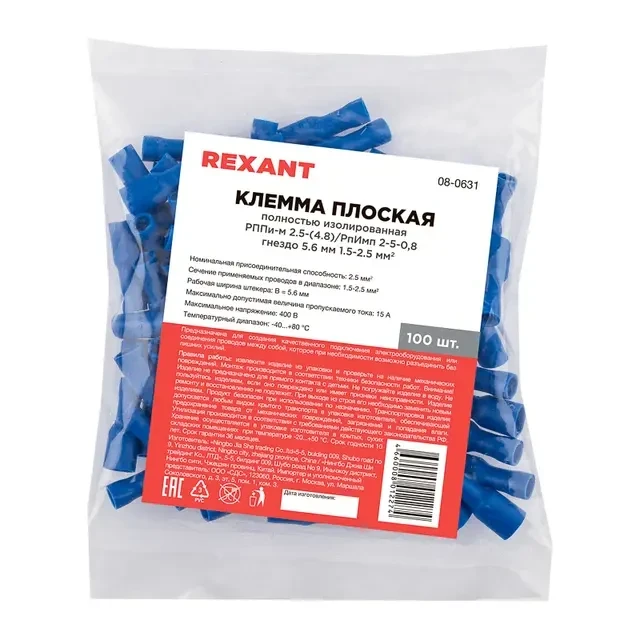 Описание REXANT 08-0631 - Купить Клемма плоская полностью изолированная
