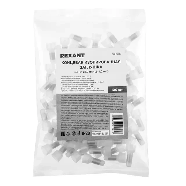 Описание REXANT 08-0702 - Купить Концевая изолированная заглушка КИЗ-2