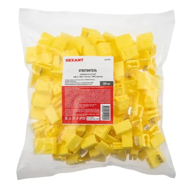 Ответвитель 4.0-6.0 мм² желтый REXANT предназначен для ответвления электроэнергии от токонесущего провода с последующей подачей питания на дополнительное электрооборудование. Такой, применяемый в электрике и радиоэлектронике, ответвитель представляет собой пластиковый корпус, внутри которого расположен контактный нож. Технические характеристики: - корпус ответвителя изготовлен из поливинилхлорида (ПВХ); - врезные контакты изготовлены из латуни с электролитическим защитным покрытием; - сечение применяемых проводов в диапазоне 4-6 мм²; - Материал контактов: луженая латунь; - Максимально допустимый: 25 А/400В. Монтаж осуществляется в считанные секунды: прокладываем провода в корпус (без предварительной зачистки); небольшим усилием на крышку, в ходе которого контактный нож прорезает изоляцию вложенных проводов, защелкиваем ее. После защелкивания соединение готово к эксплуатации.