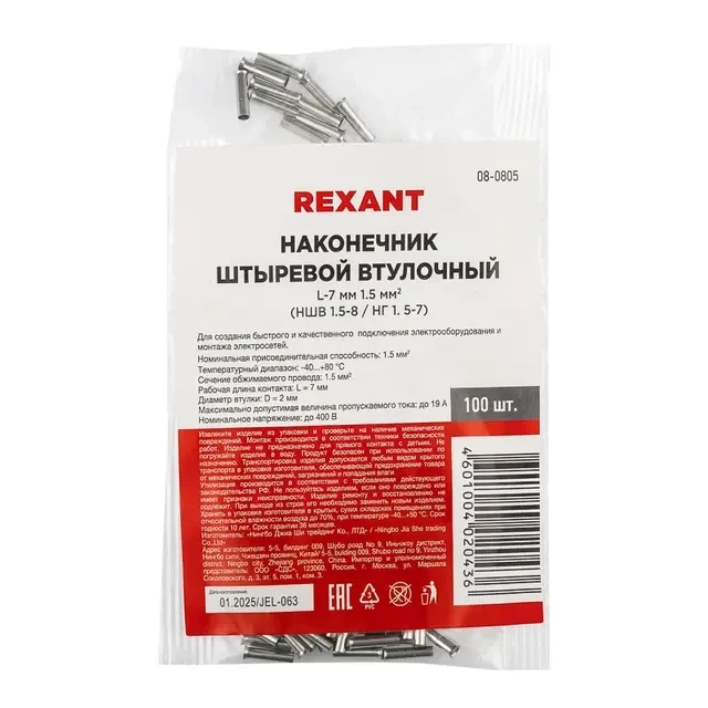 Описание REXANT 08-0805 - Купить Наконечник штыревой втулочный
