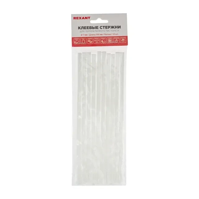 Стержни клеевые ?7мм, 200мм, белые (10 шт/уп), хедер REXANT