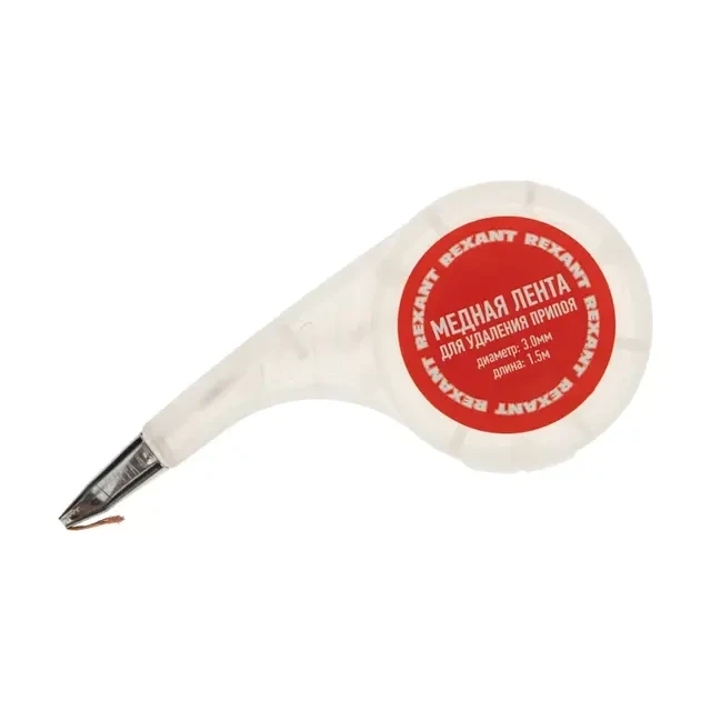 Оплетка для удаления припоя, медная, 3,0мм x 1,5м, диспенсер REXANT